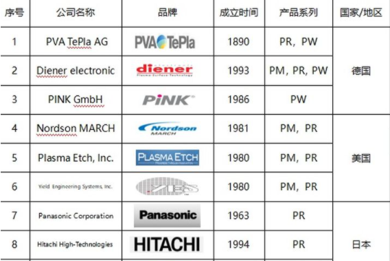 不過近幾年,國內(nèi)等離子清洗機發(fā)展很快,因為進(jìn)口機器價格貴,如果國產(chǎn)機可以達(dá)到同樣的效果,國內(nèi)的公司當(dāng)然愿意選擇國產(chǎn)品牌,東信的銷售經(jīng)理常年在外面拜訪客戶,根據(jù)他們對這些半導(dǎo)體企業(yè)的走訪,發(fā)現(xiàn)國內(nèi)半導(dǎo)體行業(yè)用的多的品牌包括下面的這一些,我整理出來了一個表格,給大家做做參考